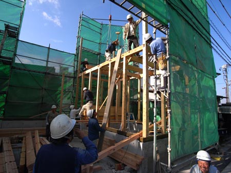 本日はとある工事現場に隣接する木造2階建ての建物の調査をしていました。基礎工事の大規模なマンションの…