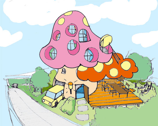 子供がやってきて 「りそうのいえ」を考えたから 書いてみてと言ってきました。 「?こんな感じで」 な…