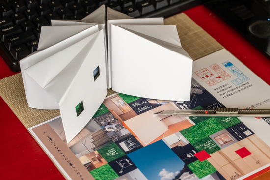 先日打合せでリーフレット在庫がなくなってしまったので追加製作中。 A4一枚を折って折って家の形にして…