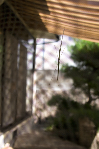 毎年夏になると事務所のある窓にだけいつも現れます。こんな感じでナナフシくんです。指で捕まえると「ピー…