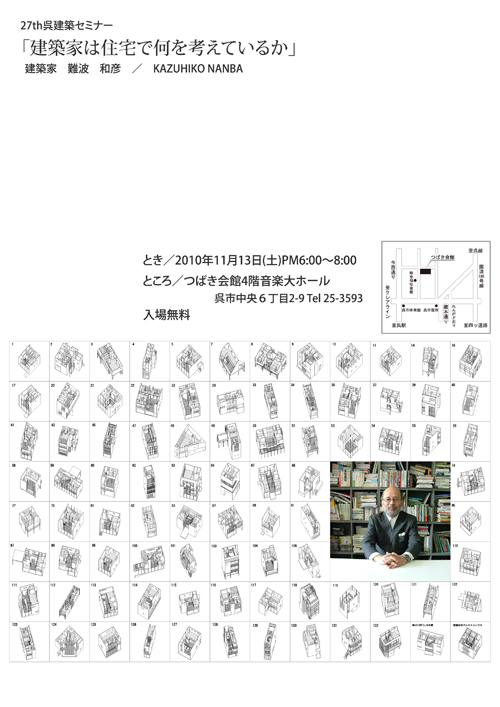昨日11月13日に行われる呉建築セミナーのポスターが仕上がってきました。難波和彦さんの顔が箱の家にう…