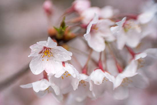 週末の雨で事務所側の呉市長谷町の桜が洗われた様にきれいに咲いていました。 少しお花の中心が赤くなって…